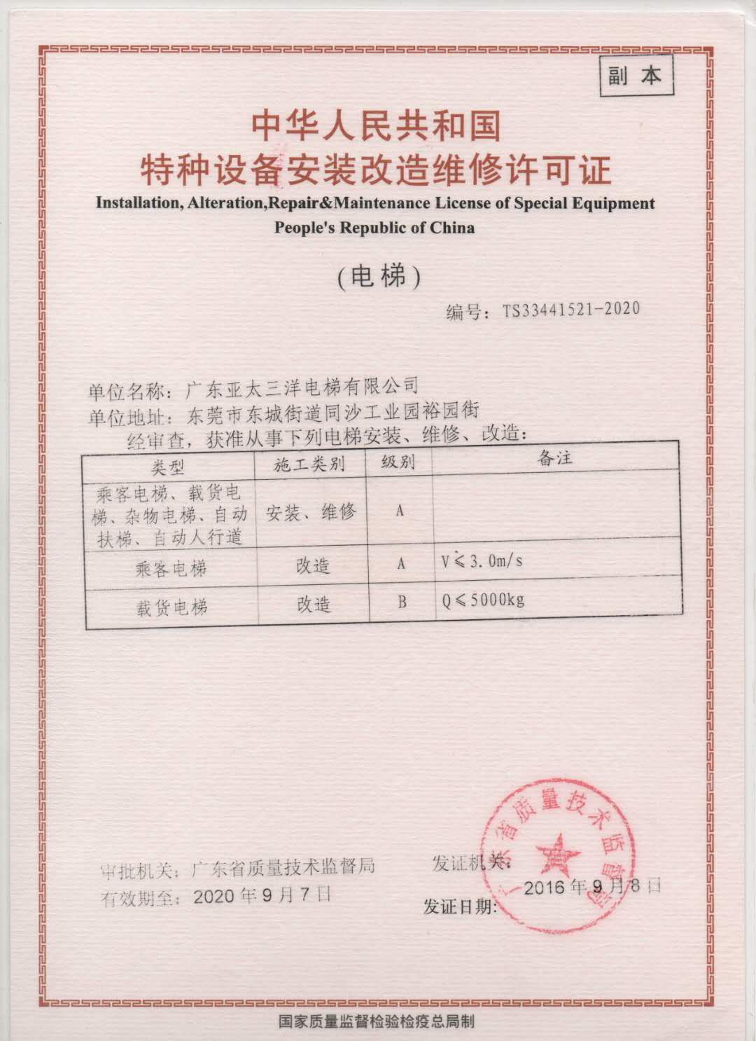 廣東亞太三洋電梯有限公司是從事電梯產(chǎn)品設(shè)計(jì)、制造、安裝及售后服務(wù)的專業(yè)公司,其前身是廣東地區(qū)較早成立的電梯企業(yè)之一,成立于1993年,是一家擁有世界先進(jìn)技術(shù)的電梯企業(yè)。先后獲得了國(guó)家質(zhì)量監(jiān)督檢驗(yàn)總局及國(guó)家有關(guān)部門頒發(fā)的(AAA)生產(chǎn)許可證和安裝資質(zhì),并通過了行業(yè)質(zhì)量體系認(rèn)證,產(chǎn)品行銷世界30多個(gè)國(guó)家和地區(qū)。“好品質(zhì),用心打造”,亞太三洋電梯堅(jiān)持一絲不茍地控制所有生產(chǎn)工藝,秉承質(zhì)量的精益求精和工藝的日臻完善...